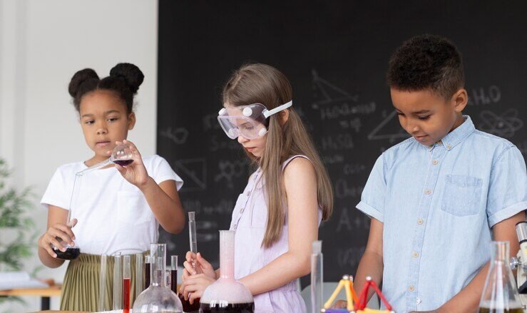 In grades 7-8, students delve deeper into advanced scientific concepts across biology, physics, and chemistry. In biology, they explore cell biology, ecology,